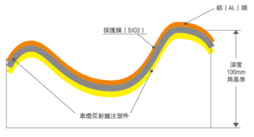制膜種類(lèi):車(chē)燈反射鋁膜一次自動(dòng)完成鍍保護(hù)膜重合工藝